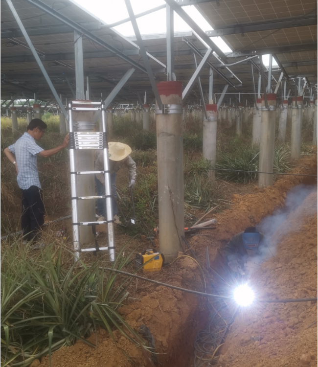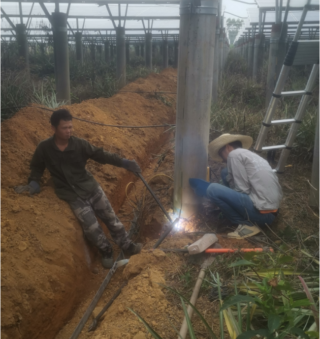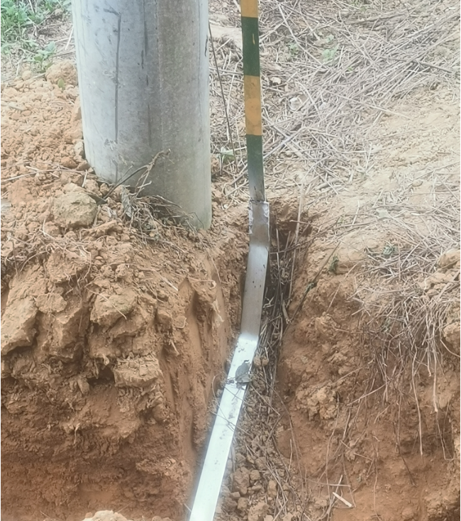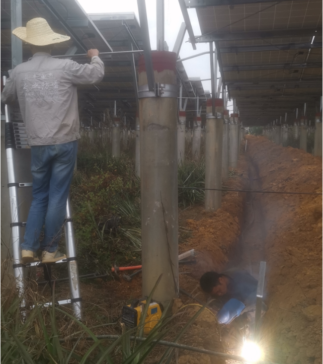 由我公司中标实施的广西鼎旭同辉农业投资有限公司绿色能源光伏发电站防雷接地技改抢修项目在2023年7月13日完成合同约定的第一阶段接地网沟槽全部开挖工作结束后,2023年7月14日开始对第二阶段的接地网焊接及防腐除锈工作全面开始。详见下图: