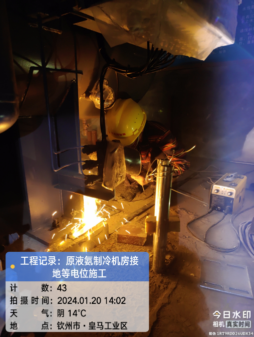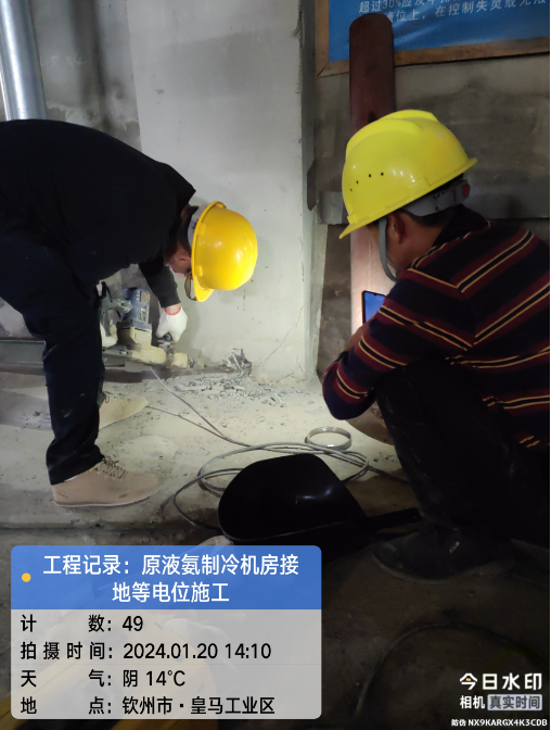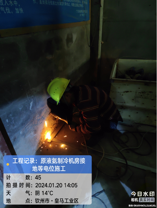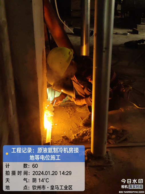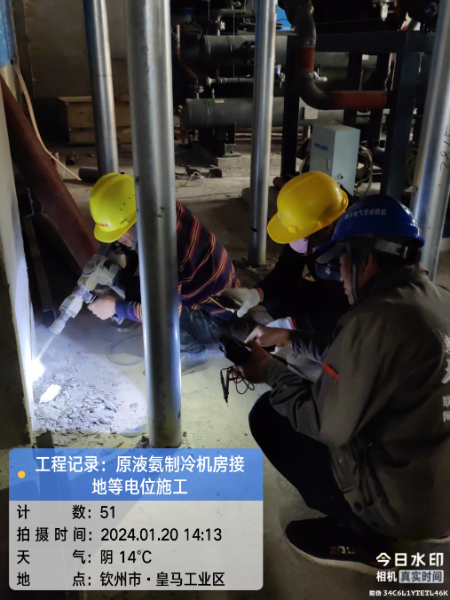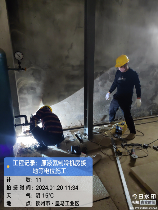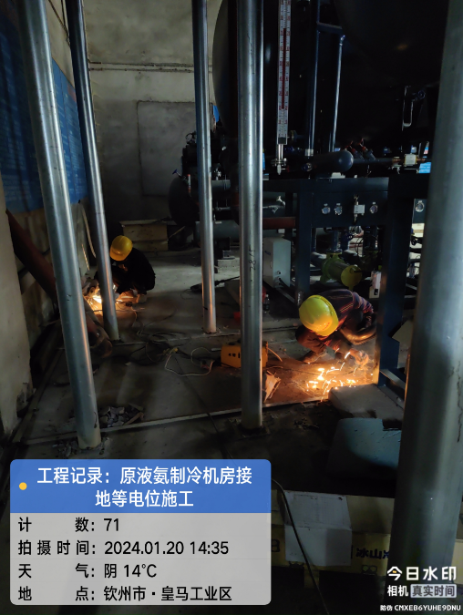 广西自贸区临海供应链有限公司冷链仓储物流加工车间原液氨机房接地等电位顺利施工