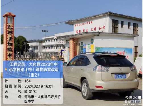 由我公司中标实施的大化瑶族自治县2023年中小学校建(构)筑物防雷改造(重2)项目,公司在2024年春节假期收假上班后第二天即安排项目经理带领项目部相关工程技术人员前往大化县,2024年2月19日--21日历时三天对本次工程项目涉及的九个乡镇十四所学校建(构)筑物防雷装置现状进行实地踏勘,收集现场第一手资料,为正式进场施工做前期准备。详见下图: