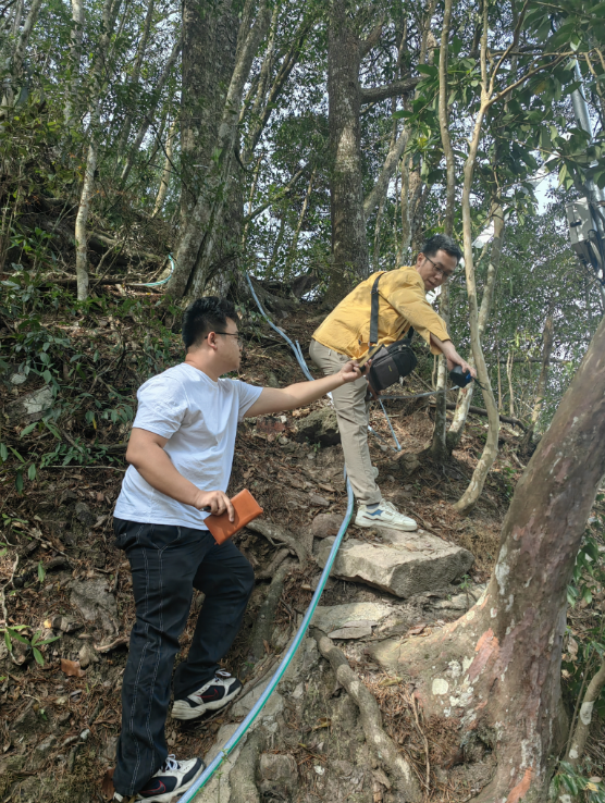 受业主单位委托,我公司工程技术人员一行三人于2025年4月15日前往广西大瑶山国家自然保护区管理中心,对现有全国树龄最高的银杉古树群(其中单树最高树龄为850年)的防雷安全保护工作进行现场踏勘和交流。详见下图: