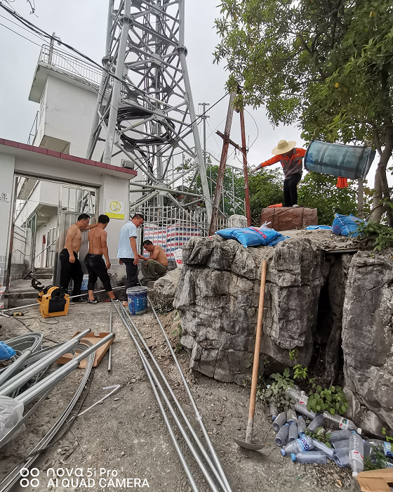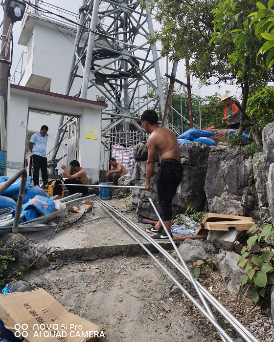 由我公司负责实施的广西广播电视忻城转播台防雷整改项目,自2022年4月21日进场施工以来,施工工作有条不紊,项目进展顺利。详见下图: