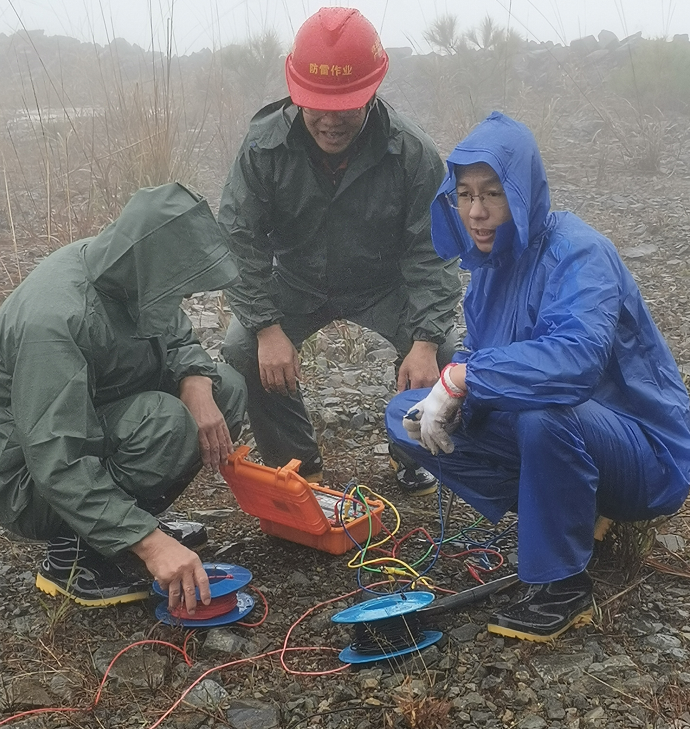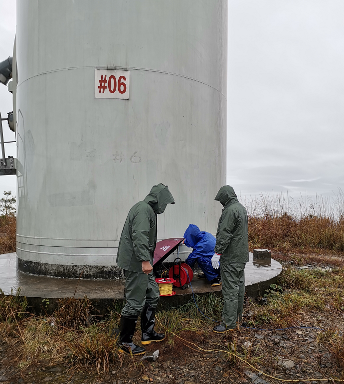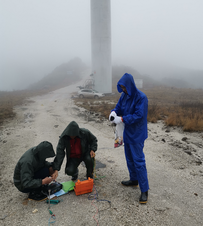 我司技术人员对恭城蜜源风电场以及容县天堂顶风电场的防雷接地系统安全问题进行现场勘查