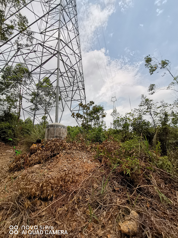 受中国南方电网超高压输电公司百色局的邀请,2020年7月15日,我公司工程技术人员对该局500kV百永乙线输电线路遭受雷击的塔基进行现场查勘。详见下图: