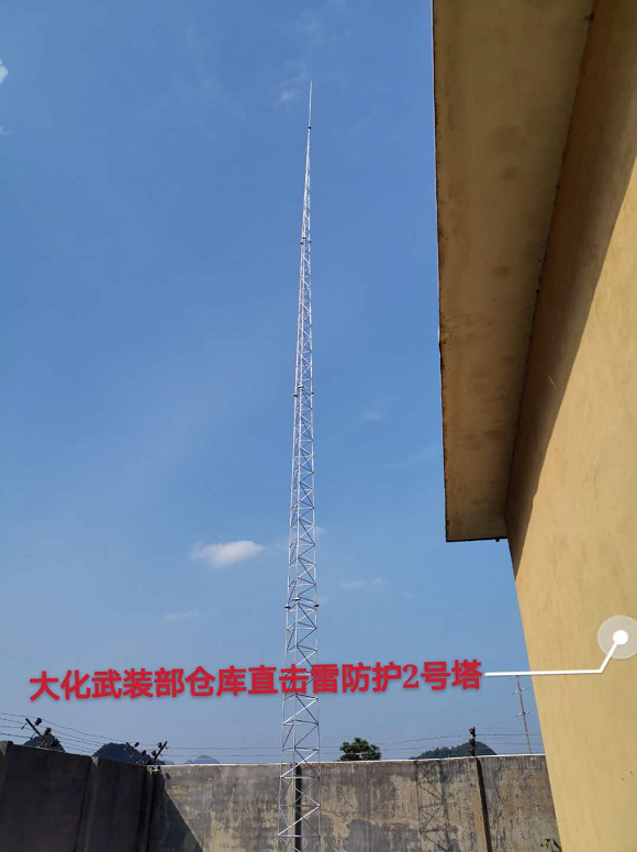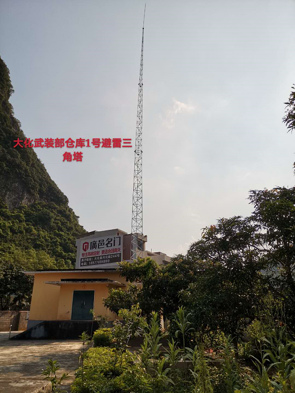 由我公司实施的大化瑶族自治县人民武装部仓库直击雷防护整改设施项目2020年7月14日已经完成最后两座避雷铁塔的立塔安装,防雷整改项目全部结束。详见下图: