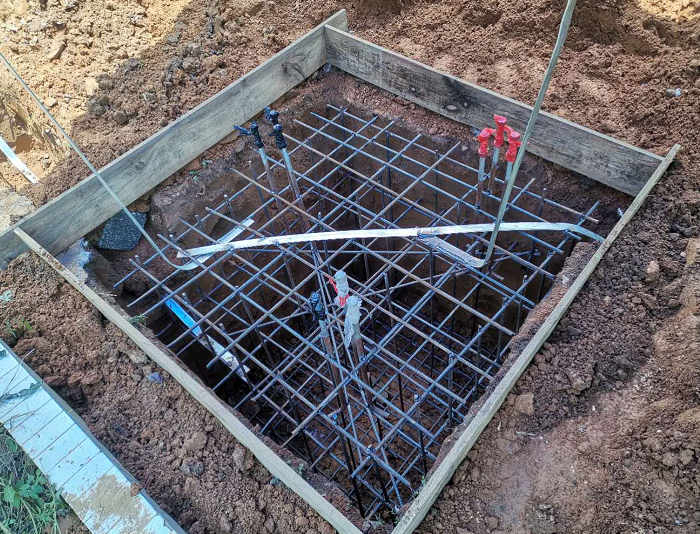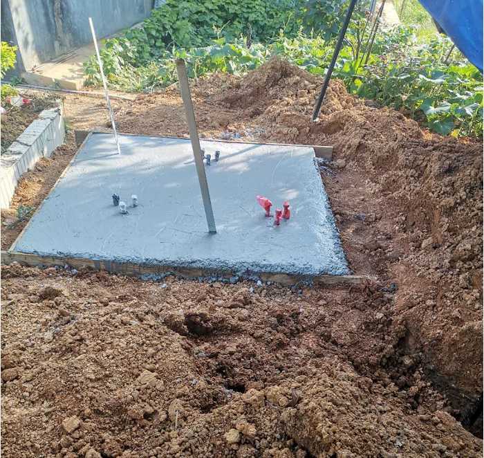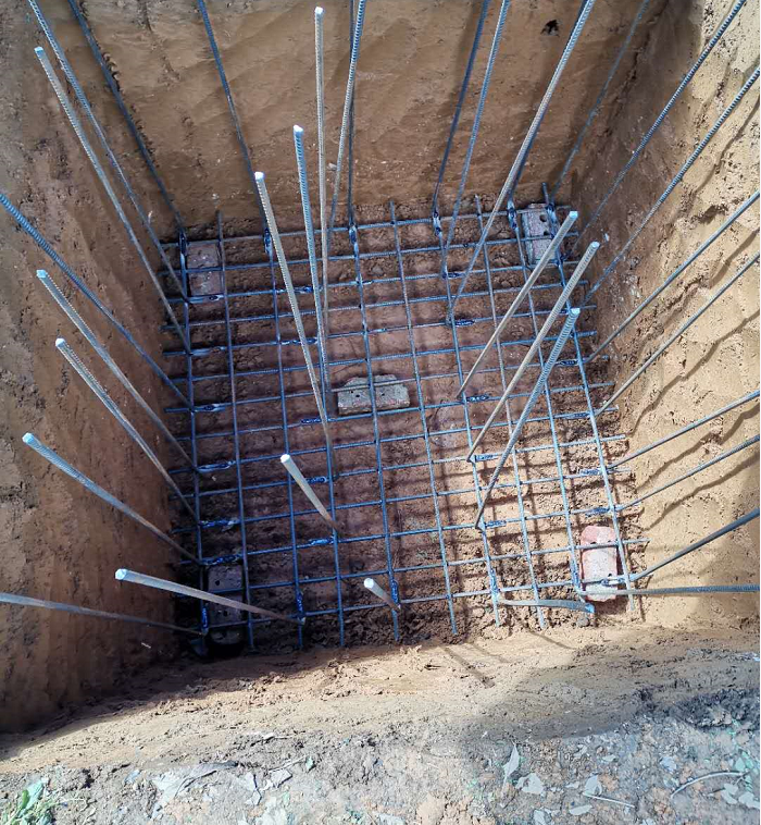 由我公司实施的大化瑶族自治县人民武装部仓库直击雷防护整改设施项目2020年6月19日进场施工,目前已经完成两座避雷铁塔的基础施工以及接地网施工,基础浇灌后处于保养之中。详见下图: